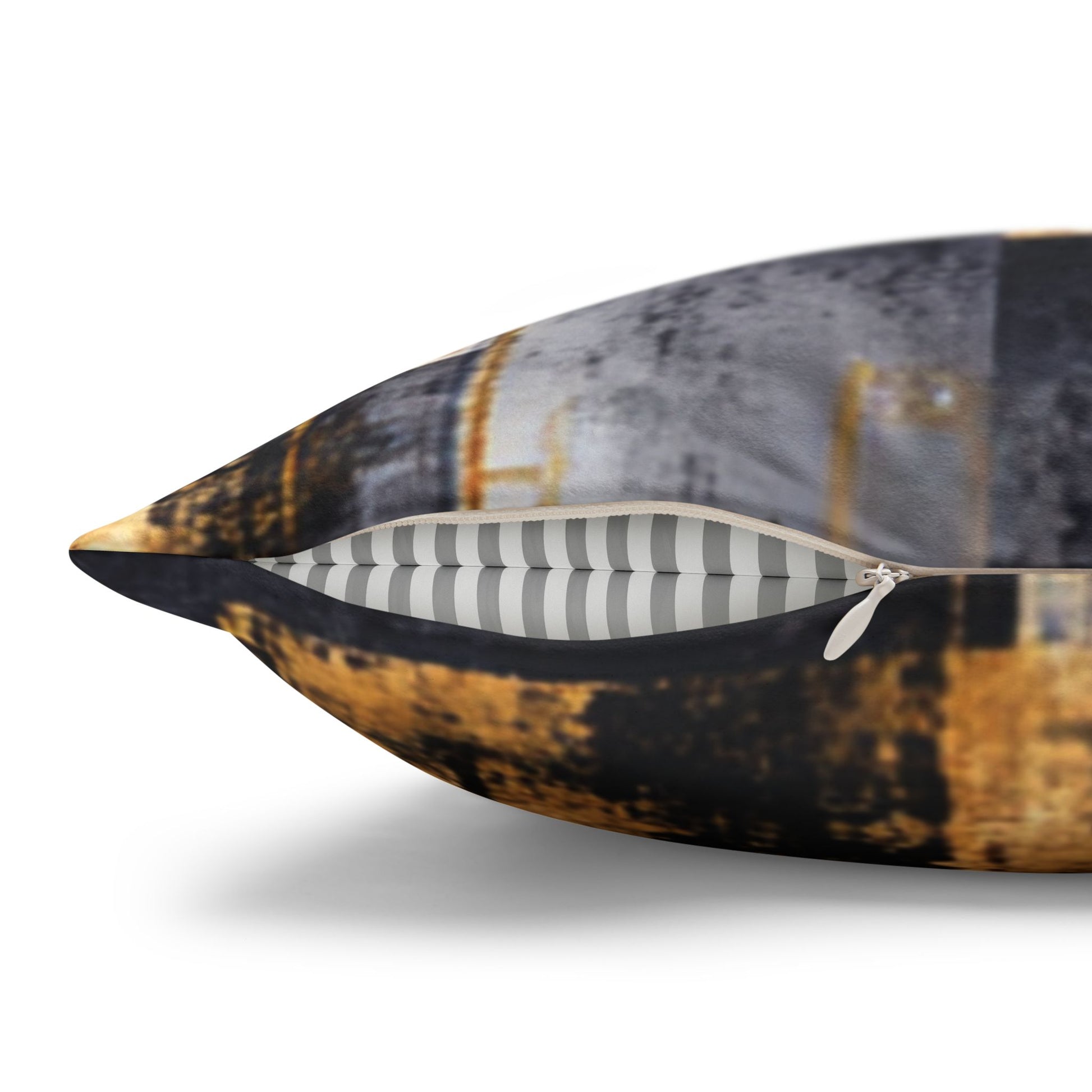 Abstract Gold & Charcoal Faux Suede Pillowcase — Luxury Accent Pillow | Loom Noir