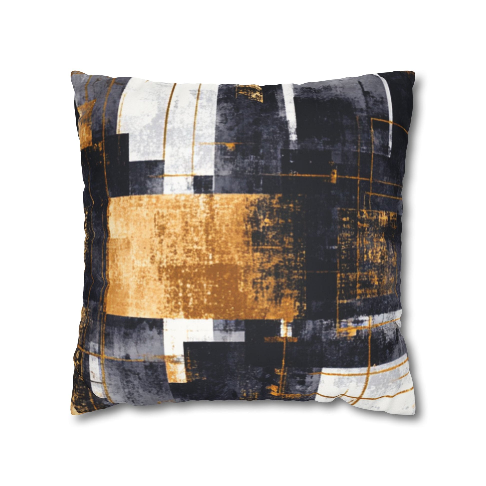 This faux suede square pillowcase brings textured warmth and modern edge to living rooms and bedrooms. The double-sided print blends charcoal, deep navy, and warm ochre in an abstract, painterly grid — like a cozy city night softened by brushed gold light. The suede-like polyester surface feels soft to the touch while holding crisp color and subtle nap that catches the light. A concealed beige zipper keeps lines clean and lets the cover slip on smoothly over an insert (choose one about 2" larger than the cover for a plump finish). Use it to layer on a sofa, tuck on a reading chair, or add contrast to a neutral bedspread; its wearable art quality nods to contemporary interiors and anyone who loves tactile, modern accents.
