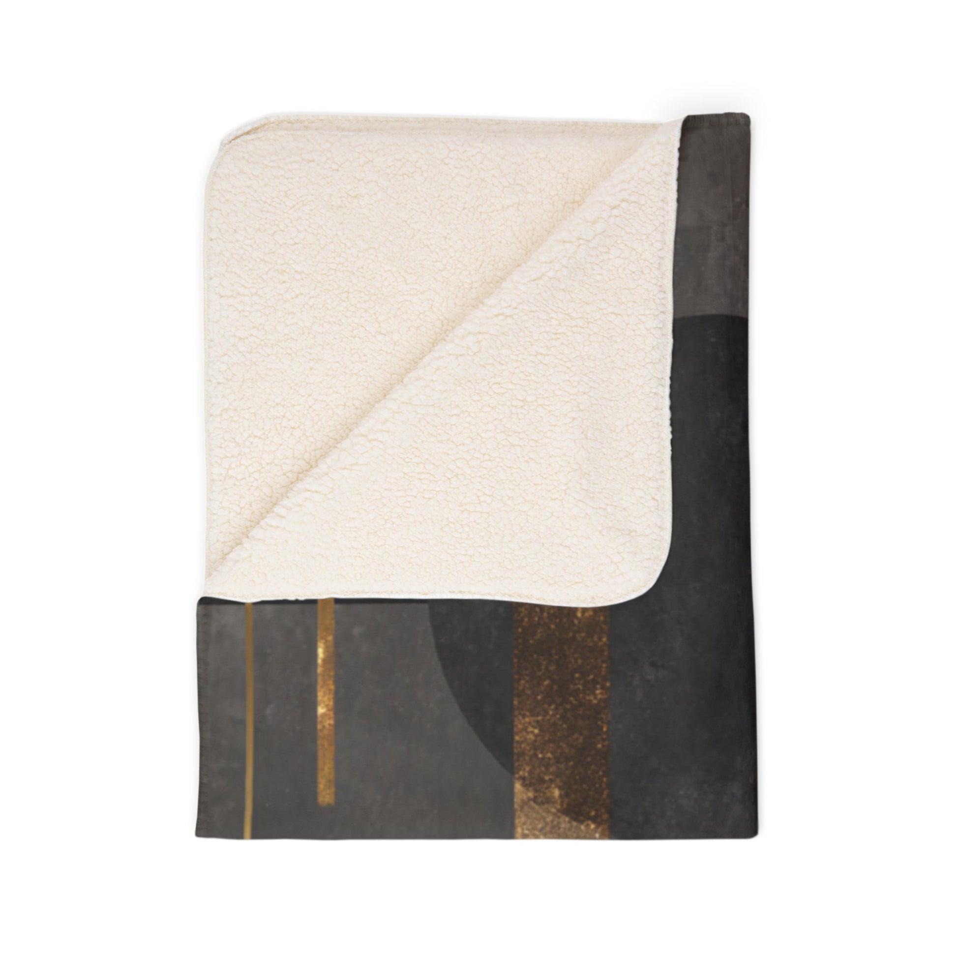 Wrap yourself in quiet luxury with this sherpa fleece blanket. Deep charcoal and matte black planes meet warm, metallic-gold circles and linear accents to create a modern, art-deco mood — like curling up in a dimly lit lounge with a good record playing. The double-sided plush fleece feels thick and pillowy against your skin while the vivid one-sided print keeps the design crisp and luminous. Lightweight to move, dense enough to hold heat, it drapes neatly over sofas, armchairs, or across your knees during a late-night reading session. Small details — hemmed edges, matched seam thread, and a sewn-in label — keep it looking refined after many washes. Available in two sizes and two background colors, it’s a tactile statement piece that elevates restful moments into an intentional pause.