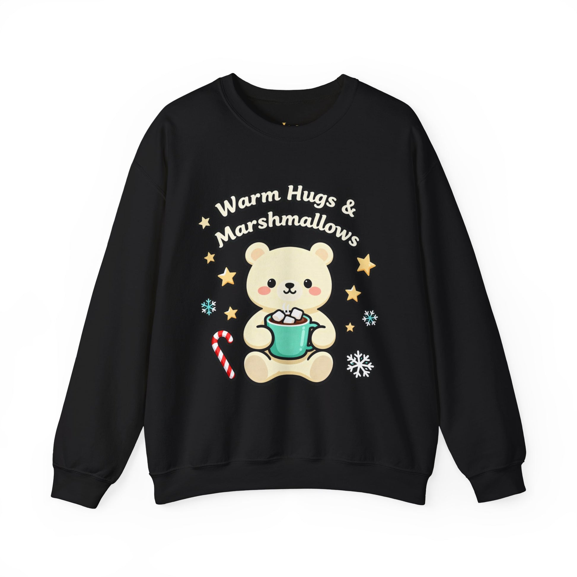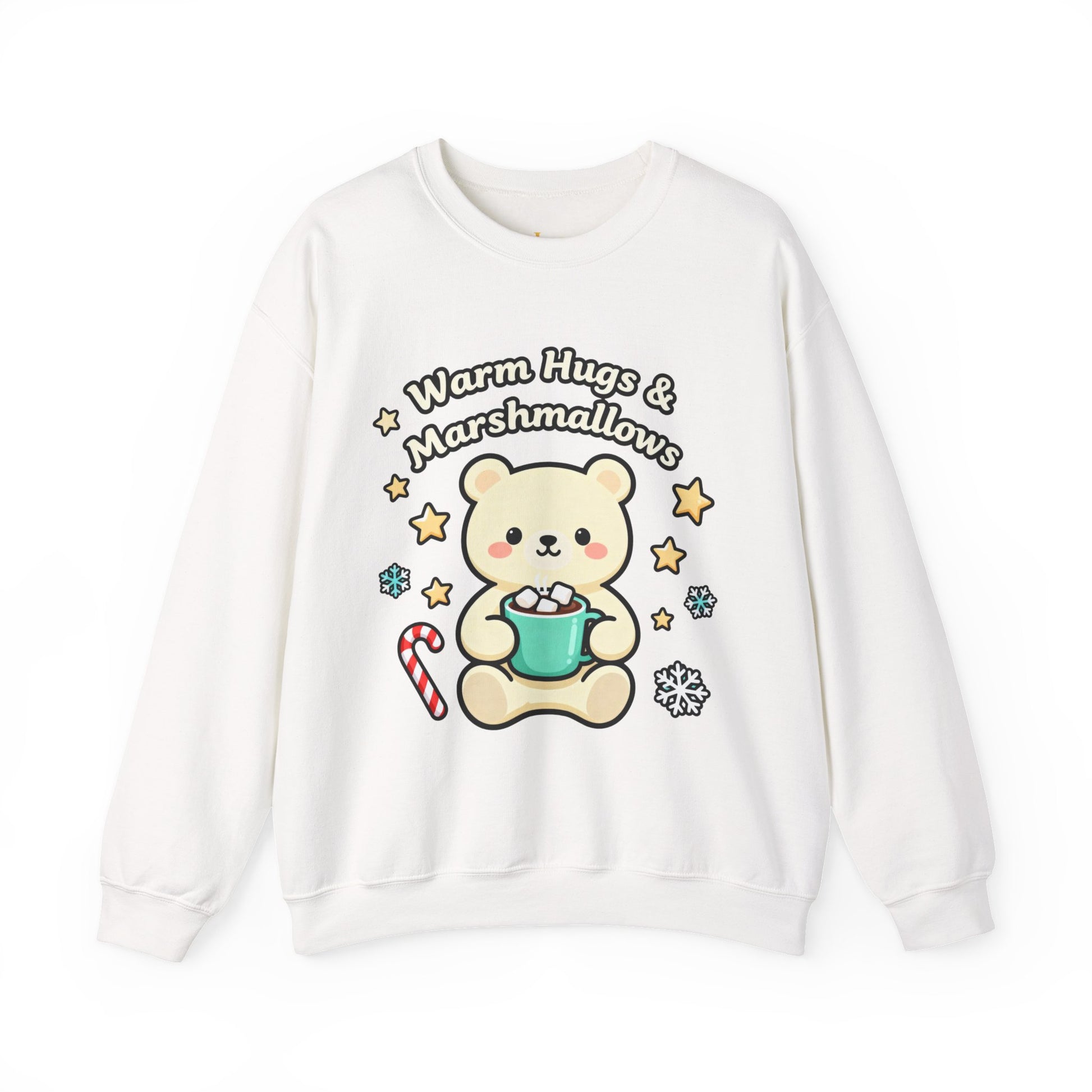 Stay cozy and festive with this Warm Hugs & Marshmallows Sweatshirt featuring a cute bear enjoying hot cocoa. Perfect for the holiday season, this crewneck sweatshirt is designed for comfort and durability, adding a touch of warmth and joy to your winter wardrobe. Ideal for adults looking for a cute and festive addition to their holiday attire.