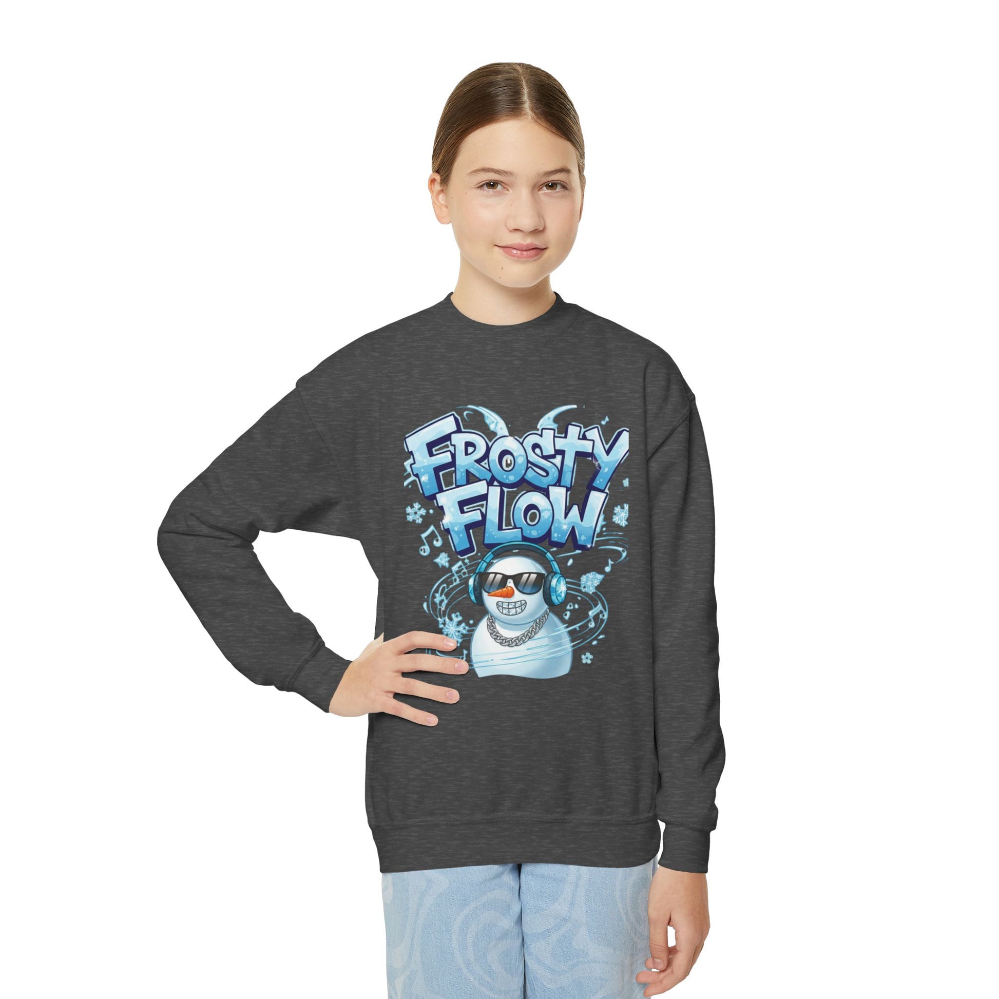 Stay cozy and stylish in this Frosty Flow Youth Sweatshirt featuring a cool snowman graphic. Perfect for the winter season, this pullover exudes a fun and playful vibe that kids will love. It's a great addition to any child's wardrobe during the holiday season.
