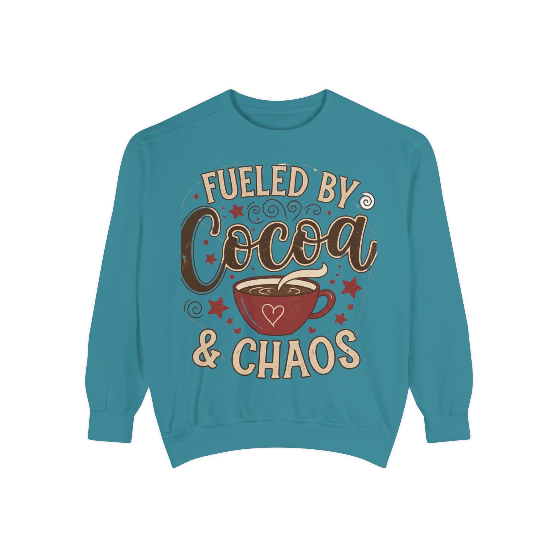 Fueled by Cocoa & Chaos Sweatshirt - Cozy Hot Cocoa Pullover | Loom Noir