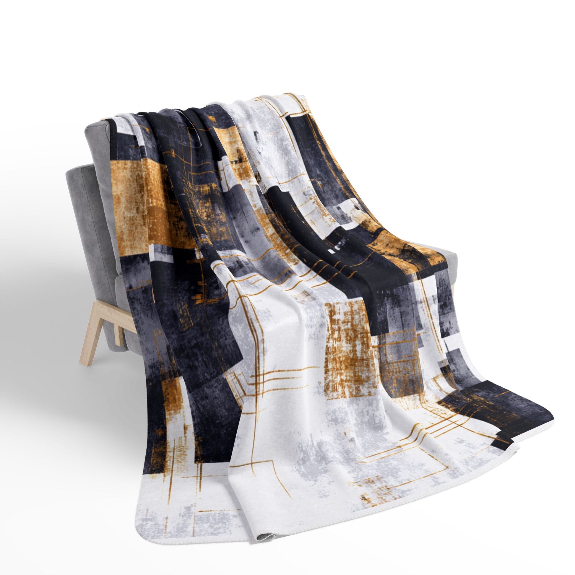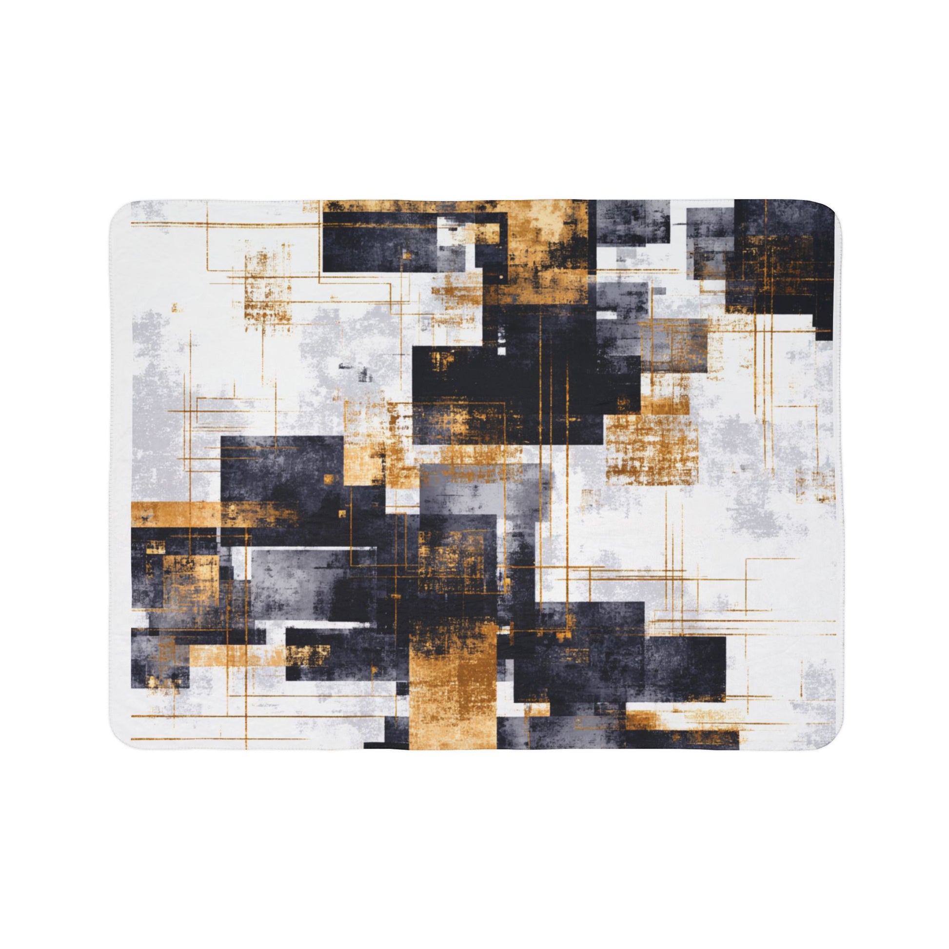 Wrap yourself in a modern, artful layer that feels like a quiet evening in a minimalist loft. This fleece sherpa blanket pairs plush, double-sided warmth with a bold geometric print—soft greys, deep charcoals, and warm golds layered into textured blocks and fine linear accents. It drapes easily over an armchair or sofa, becoming the go-to for settling in with a book, resting after a long day, or adding a chic finish to your living room. The heavy, lofty pile and hemmed edges hold their shape and color through everyday use, so the design stays striking while the blanket stays cozy.