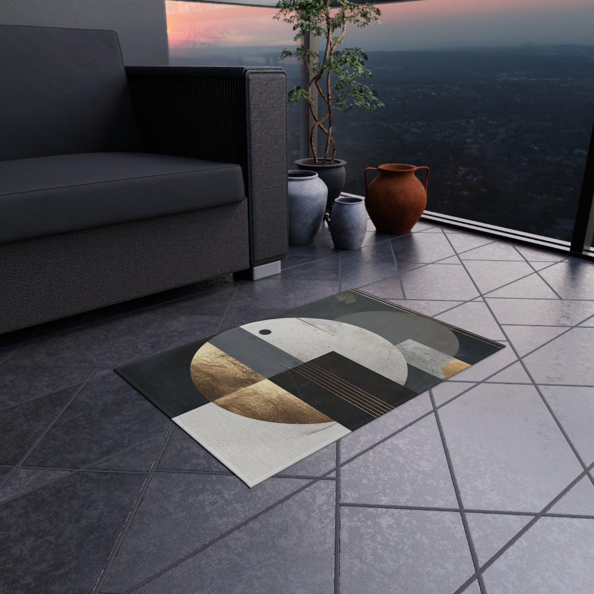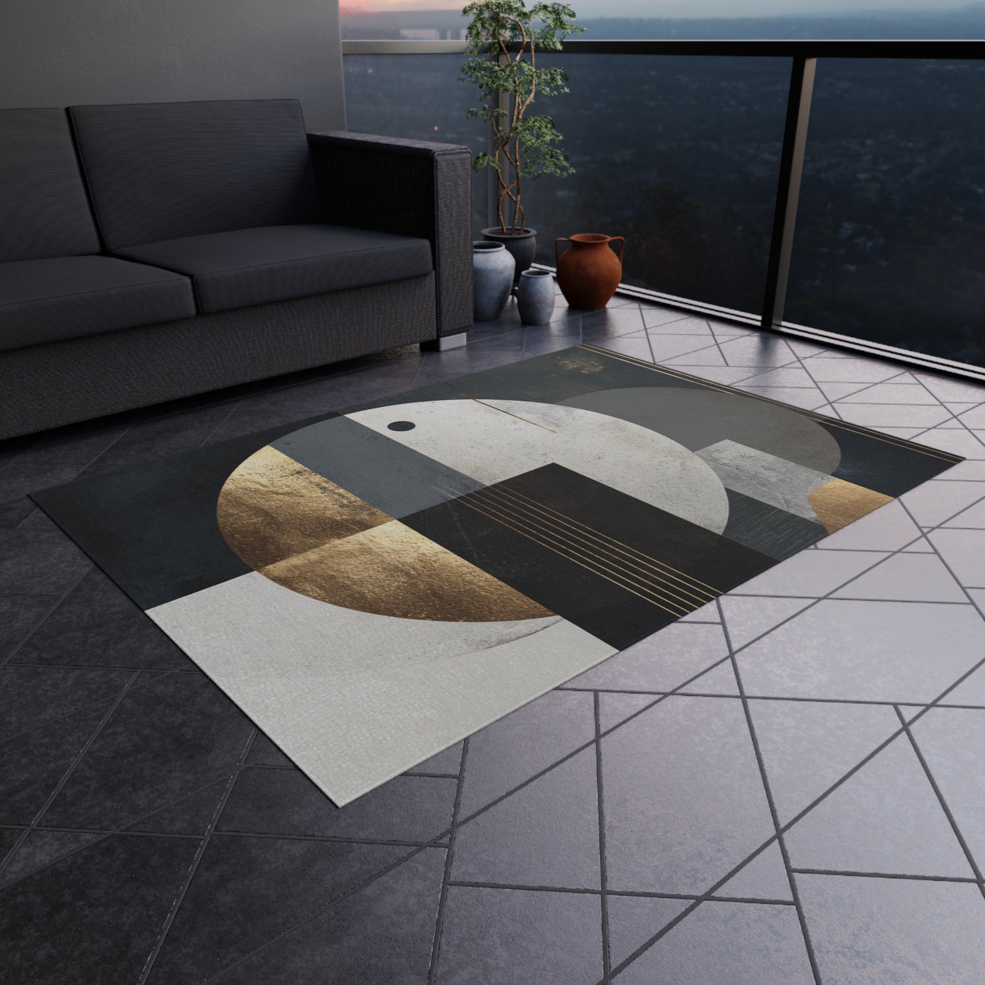 Geometric Circles Outdoor Rug — Modern Abstract Patio Mat with Gold Accents | Loom Noir