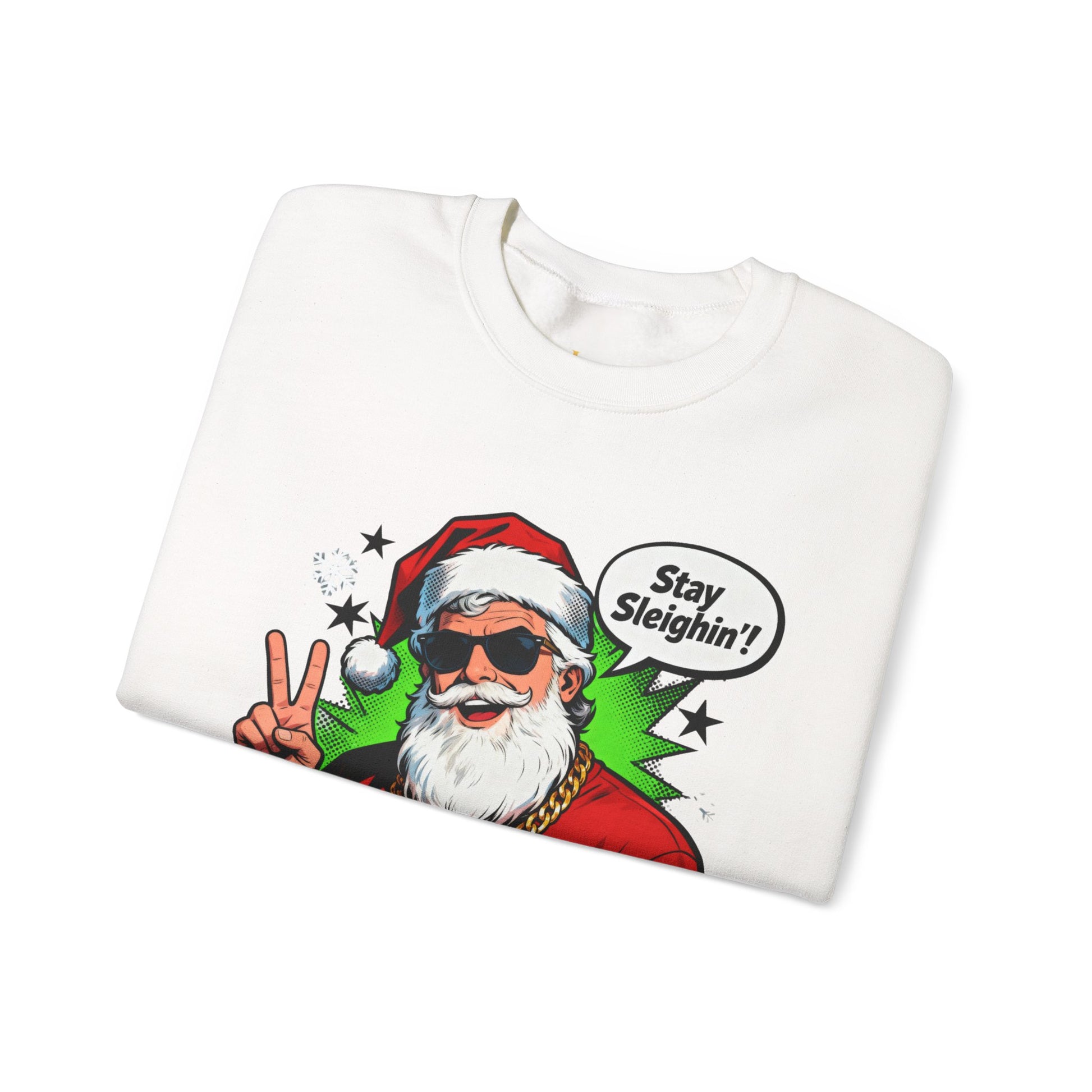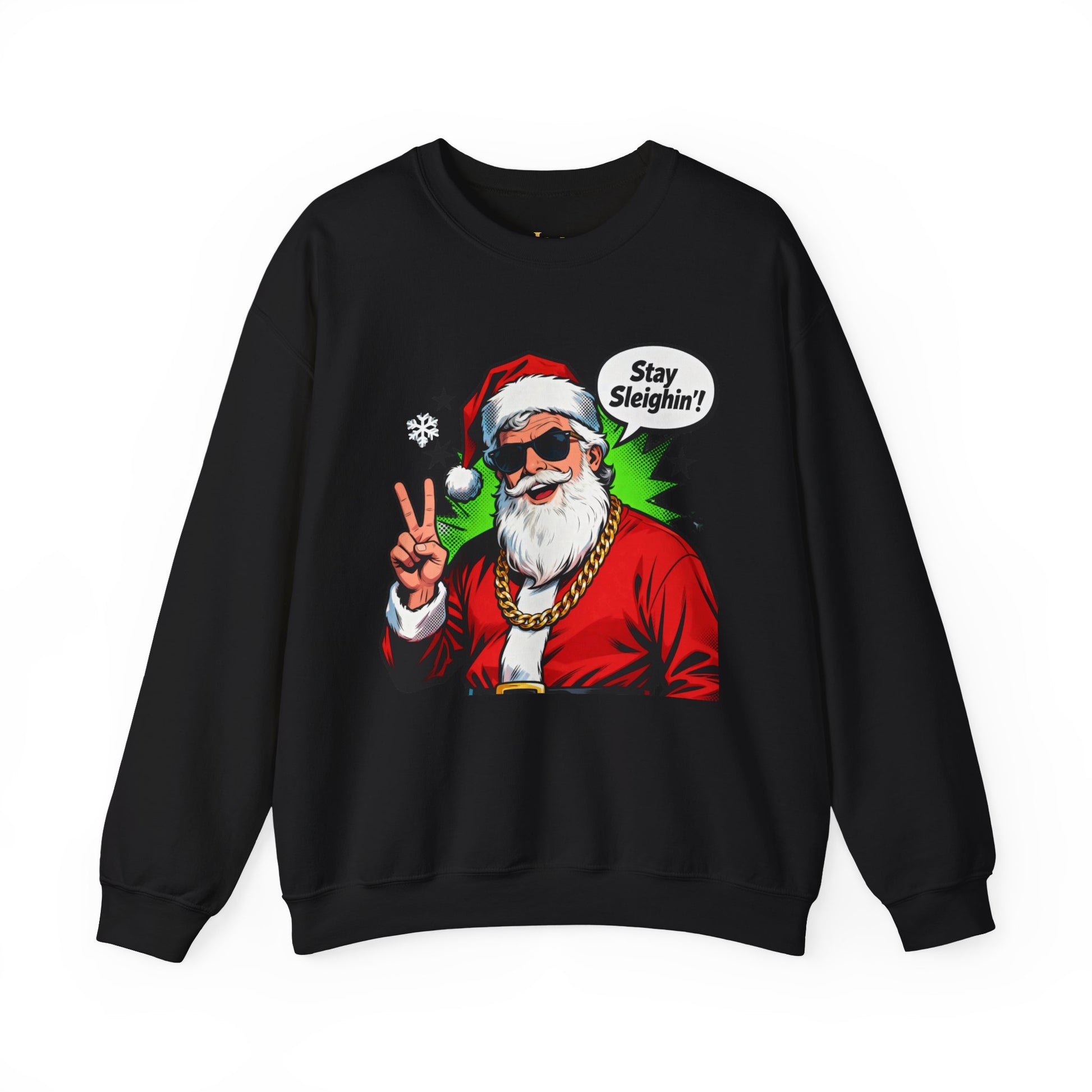 Stay Sleighin' Sweatshirt - Santa Peace Sign Christmas Crewneck | Loom Noir